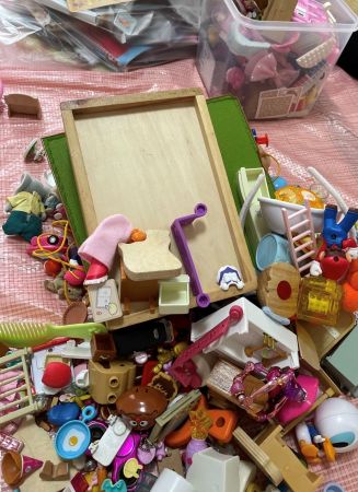細かいおもちゃがたくさん。親子で分類をがんばってくださいました。