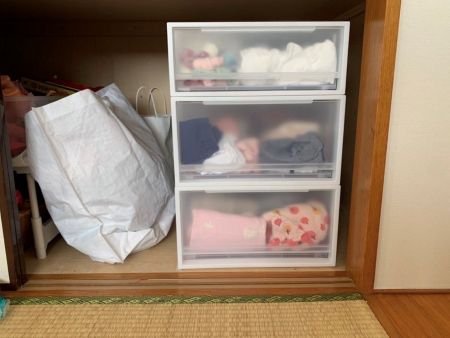 押入れ右側|赤ちゃんグッズの準備スペースに