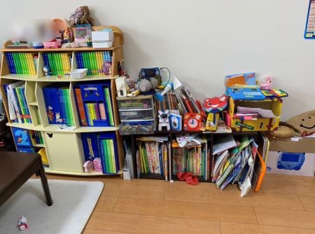 今回の作業では、特にお母さまが大変頑張ってくださり、おもちゃ・絵本類の量を丁寧に見直しました。