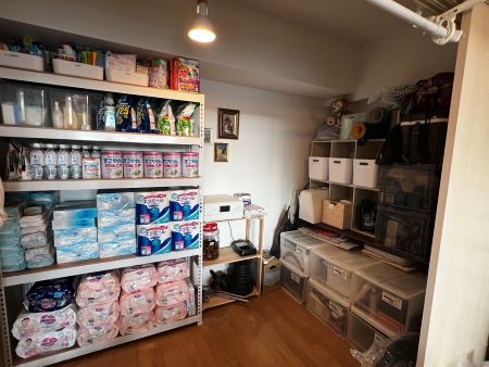 ※ストック量は多めに感じる方もいらっしゃるかもしれませんが、長期出張が多いご主人様が「不在の間も困らないように」とご家族を想って備えたいというご意向がありました。